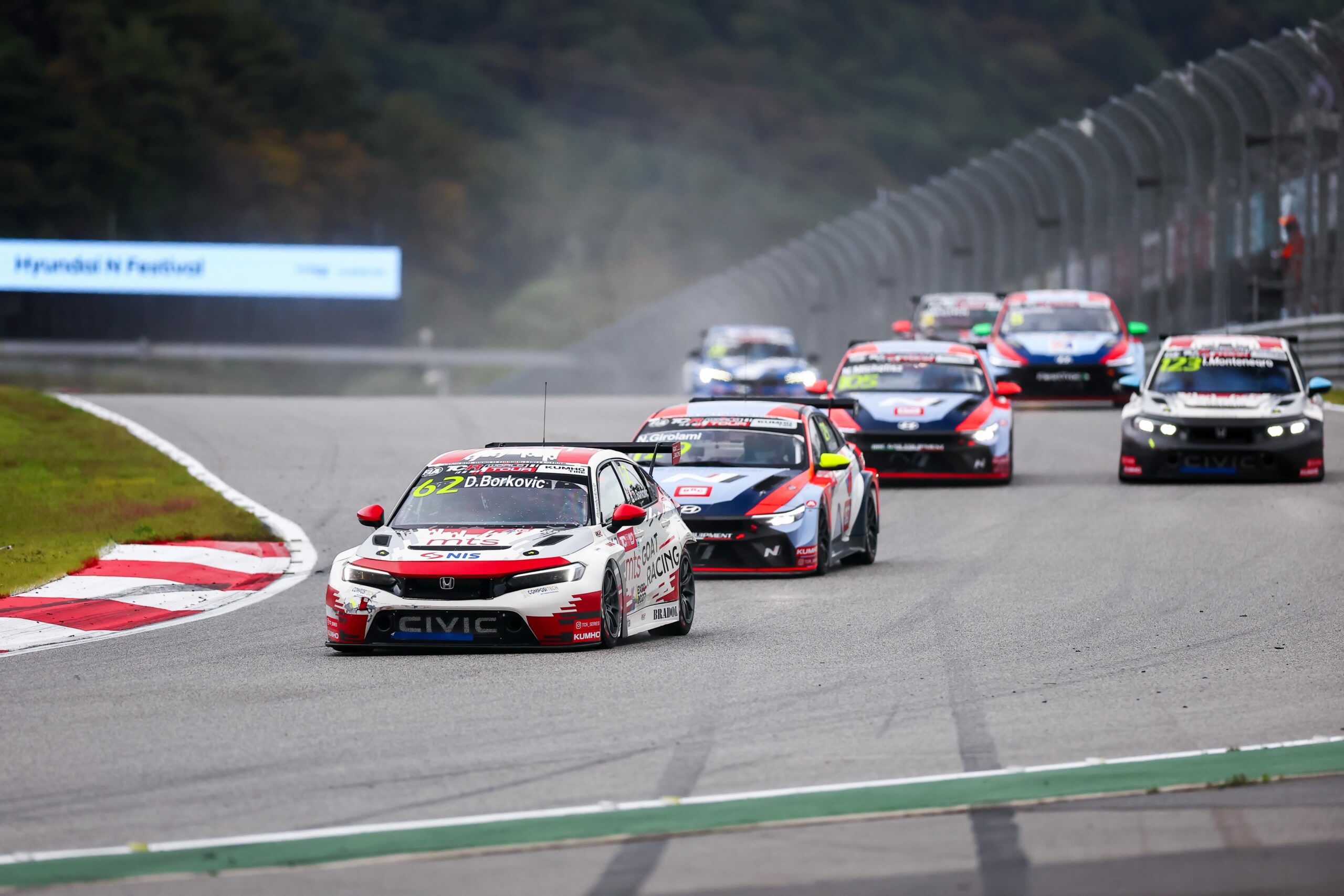 (19.10.2025) – Dušan Borković, najbolji automobilista Srbije i Balkana, u drugoj trci FIA TCR Svetskog prvenstva u Južnoj Koreji startovao je sa treće pozicije i već u prvim krugovima uspeo da se probije na drugo mesto. Naš šampion je odlično branio svoju poziciju sve do nesportskog kontakta od strane Francuza, Jana Erlahera, vozača fabričkog Lynk & Co tima, nakon čega je izgubio dve pozicije i trku završio kao petoplasirani.