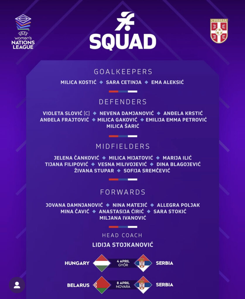 SELEKTORKA LIDIJA STOJKANOVIĆ ODREDILA SPISAK FUDBALERKI ZA NAREDNE MEČEVE